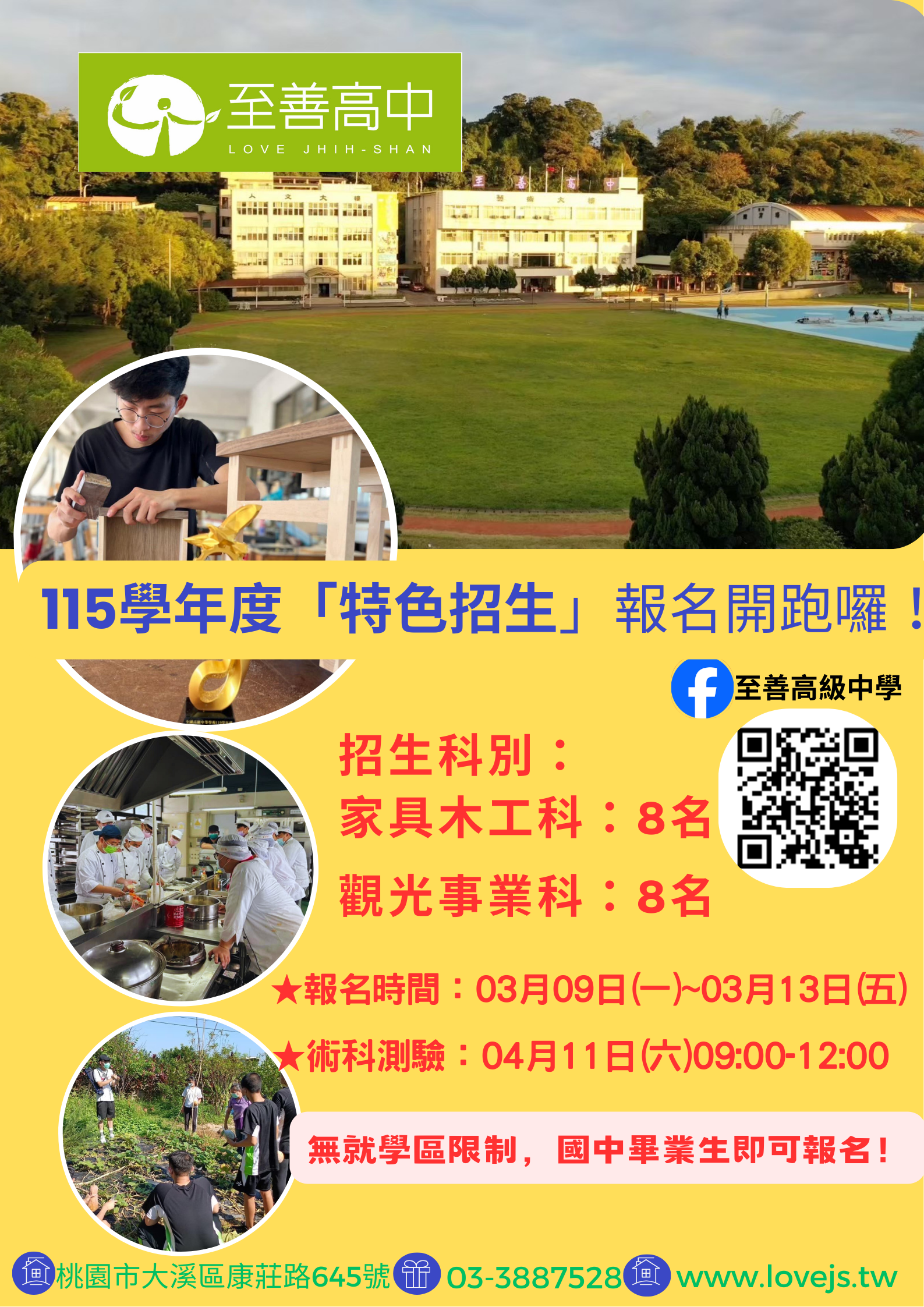 | 公告主旨 | 桃園大溪「至善高中」辦理115學年度「特色招生」 專業群科甄選入學 |