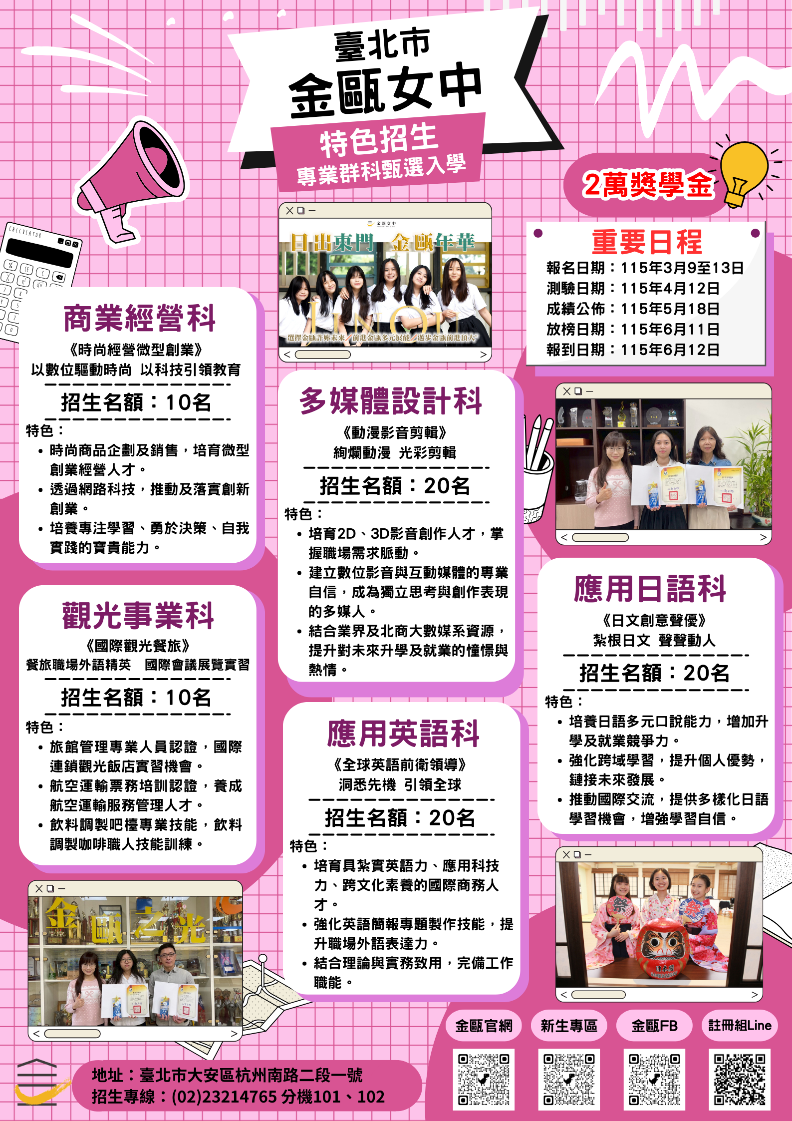 | 公告主旨 | 臺北市私立金甌女子高級中學115學年度【特色招生】宣傳海報 |