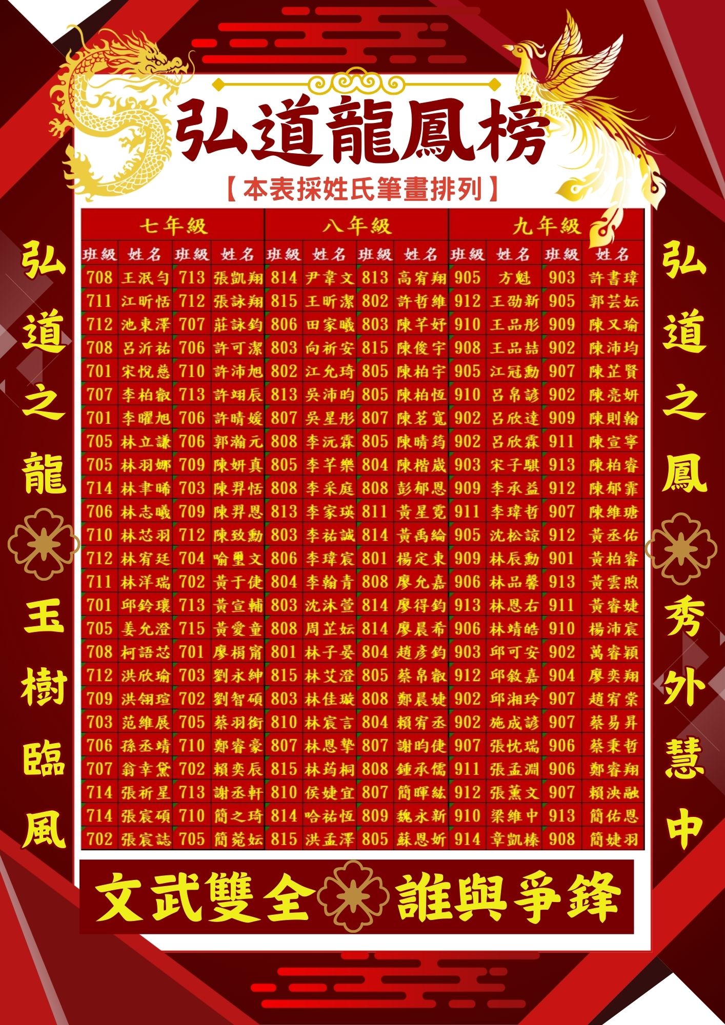 校園公告 公告主旨 龍鳳榜(含114-1七八九年級第三次定期考組距人數及各科組距) 發佈日期 2026 年 3 月 02 日 發佈單位 註冊組 公告類別 最新訊息, 榮譽榜, 註冊組 公告等級 無 點閱次數 49,961 公告內容 114-1七、八、九年級第三次定期考 114-01-N03各科組距 114-01-N03各科組距 檔案名稱檔案大小檔案格式下載114-01-N03各科組距.pdf54.96 KB新視窗開啟檔案 114-01-N03各科組距.pdf 114-1 七八九年級第三次定考組距人數 114-1 七八九年級第三次定考組距人數 檔案名稱檔案大小檔案格式下載114-1 七八九年級第三次定考組距人數.xls31.50 KB新視窗開啟檔案 114-1 七八九年級第三次定考組距人數.xls 114-1七、八、九年級第二次定期考 114-01-N02各科組距 114-01-N02各科組距 檔案名稱檔案大小檔案格式下載114-01-N02各科組距.pdf56.57 KB新視窗開啟檔案 114-01-N02各科組距.pdf 114-1 七八九年級第二次定考組距人數 114-1 七八九年級第二次定考組距人數 檔案名稱檔案大小檔案格式下載114-1 七八九年級第二次定考組距人數.xls31.50 KB新視窗開啟檔案 114-1 七八九年級第二次定考組距人數.xls 114-1七、八、九年級第一次定期考 114-1 七八九年級第一次定考組距人數 114-1 七八九年級第一次定考組距人數 檔案名稱檔案大小檔案格式下載114-1 七八九年級第一次定考組距人數.xls31.50 KB新視窗開啟檔案 114-1 七八九年級第一次定考組距人數.xls 114-01-N01各科組距(更新) 114-01-N01各科組距(更新) 檔案名稱檔案大小檔案格式下載114-01-N01各科組距(更新).pdf54.91 KB新視窗開啟檔案 114-01-N01各科組距(更新).pdf14:10更新 113-2七、八年級第三次定期考 113-2 7.8年級第三次定考組距人數 113-2 7.8年級第三次定考組距人數 檔案名稱檔案大小檔案格式下載113-2 7.8年級第三次定考組距人數.xls31.50 KB新視窗開啟檔案 113-2 7.8年級第三次定考組距人數.xls 113-02-N03各科組距 113-02-N03各科組距 檔案名稱檔案大小檔案格式下載113-02-N03各科組距.pdf46.02 KB新視窗開啟檔案 113-02-N03各科組距.pdf 113-2七、八年級第二次定期考 113-02-N02各科組距 113-02-N02各科組距 檔案名稱檔案大小檔案格式下載113-02-N02各科組距.pdf46.52 KB新視窗開啟檔案 113-02-N02各科組距.pdf 113-2 7.8年級第二次定考組距人數 113-2 7.8年級第二次定考組距人數 檔案名稱檔案大小檔案格式下載113-2 7.8年級第二次定考組距人數.xls31.50 KB新視窗開啟檔案 113-2 7.8年級第二次定考組距人數.xls 113-2九年級第一次定期考 113-02-N03-9年級各科組距 113-02-N03-9年級各科組距 檔案名稱檔案大小檔案格式下載113-02-N03-9年級各科組距.pdf38.04 KB新視窗開啟檔案 113-02-N03-9年級各科組距.pdf 113-2九年級第一次定考組距人數 113-2九年級第一次定考組距人數 檔案名稱檔案大小檔案格式下載113-2九年級第一次定考組距人數.xls31.00 KB新視窗開啟檔案 113-2九年級第一次定考組距人數.xls 113-2七八年級第一次定期考 (0418更新)113-02-N01各科組距 (0418更新)113-02-N01各科組距 檔案名稱檔案大小檔案格式下載(0418更新)113-02-N01各科組距.pdf46.59 KB新視窗開啟檔案 (0418更新)113-02-N01各科組距.pdf 113-2 7.8年級第一次定考組距人數 113-2 7.8年級第一次定考組距人數 檔案名稱檔案大小檔案格式下載113-2 7.8年級第一次定考組距人數.xls檔案不存在 !!新視窗開啟檔案 113-2 7.8年級第一次定考組距人數.xls 113-1第三次定期考 113-01-N03各科組距(公告) 113-01-N03各科組距(公告) 檔案名稱檔案大小檔案格式下載113-01-N03各科組距(公告).pdf55.94 KB新視窗開啟檔案 113-01-N03各科組距(公告).pdf 113-1 七八九年級第三次定考組距人數(公告) 113-1 七八九年級第三次定考組距人數(公告) 檔案名稱檔案大小檔案格式下載113-1 七八九年級第三次定考組距人數(公告).xls31.50 KB新視窗開啟檔案 113-1 七八九年級第三次定考組距人數(公告).xls 113-1第二次定期考(龍鳳榜12/20於17:00更新) 113-1 七八九年級第二次定考組距人數 113-1 七八九年級第二次定考組距人數 檔案名稱檔案大小檔案格式下載113-1 七八九年級第二次定考組距人數.xls31.50 KB新視窗開啟檔案 113-1 七八九年級第二次定考組距人數.xls 113-1第一次定期考 七、八、九年級龍鳳榜、組距人數及各科組距(1104新增) 113-1 七八九年級第一次定考組距人數 113-1 七八九年級第一次定考組距人數 檔案名稱檔案大小檔案格式下載113-1 七八九年級第一次定考組距人數.xls31.50 KB新視窗開啟檔案 113-1 七八九年級第一次定考組距人數.xls 113-01-N01各科組距 113-01-N01各科組距 檔案名稱檔案大小檔案格式下載113-01-N01各科組距.pdf55.70 KB新視窗開啟檔案 113-01-N01各科組距.pdf 112-2第三次定期考 七、八年級龍鳳榜、組距人數、各科組距 112-2七八年級第三次定考龍鳳榜 112-2七八年級第三次定考龍鳳榜 檔案名稱檔案大小檔案格式下載112-2七八年級第三次定考龍鳳榜.xls58.50 KB新視窗開啟檔案 112-2七八年級第三次定考龍鳳榜.xls 112-2-3-七、八年級各科組距 112-2-3-七、八年級各科組距 檔案名稱檔案大小檔案格式下載112-2-3-七、八年級各科組距.pdf46.28 KB新視窗開啟檔案 112-2-3-七、八年級各科組距.pdf 112-2 7.8年級第三次定考組距人數 112-2 7.8年級第三次定考組距人數 檔案名稱檔案大小檔案格式下載112-2 7.8年級第三次定考組距人數.xls31.50 KB新視窗開啟檔案 112-2 7.8年級第三次定考組距人數.xls(18:30更新) 112-2第二次定考 各年級九年級龍鳳榜、組距人數、各科組距 112